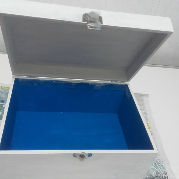 Lo primero que he hecho ha sido lijar la caja y pintarla de azul con pintura acrílica.