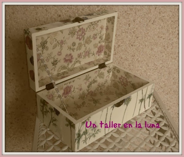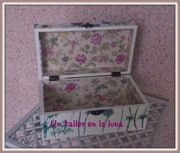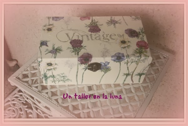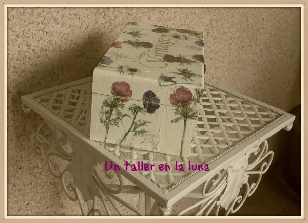 y una ve seca pase a decorarla con la técnica del decoupage,elegí una servilleta de flores de las ultimas que he comprado y se la puse entera alrededor de la cajita.