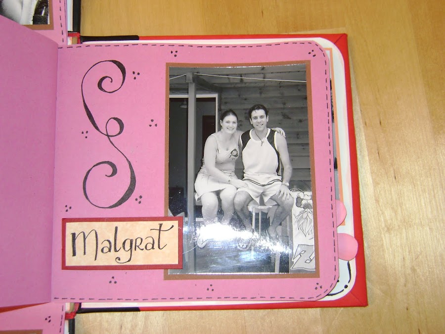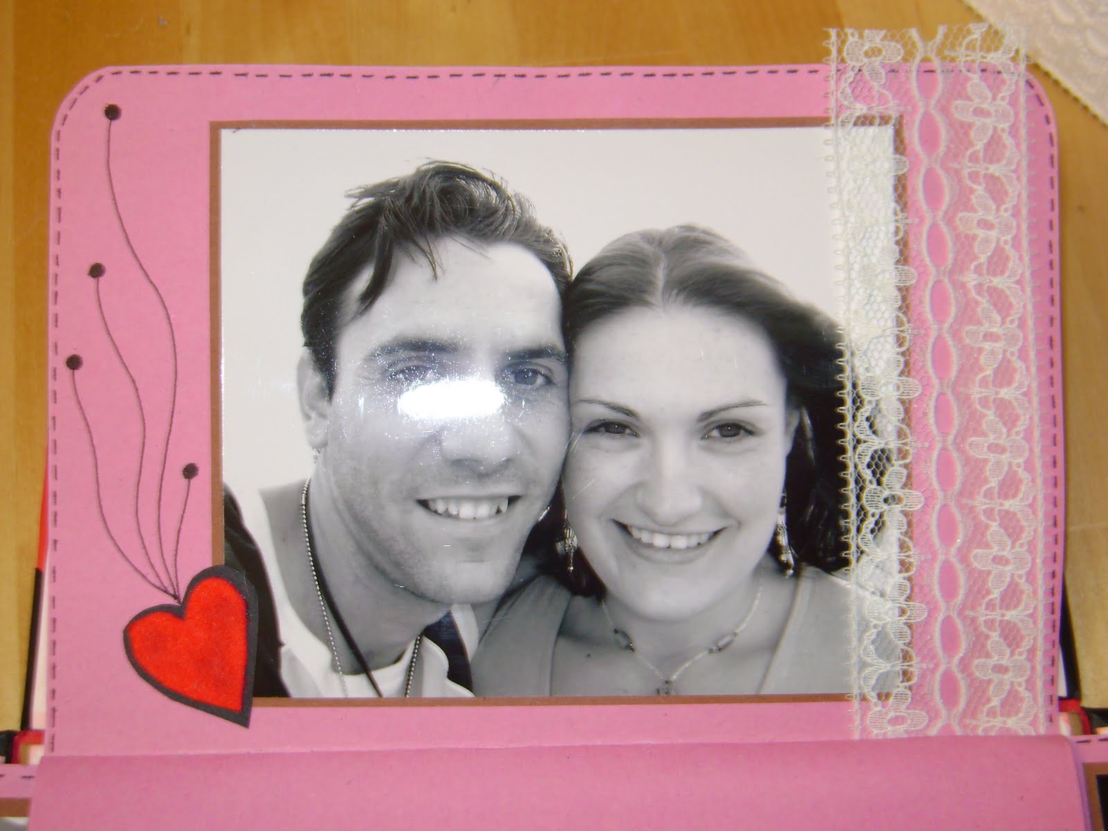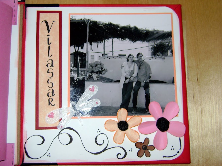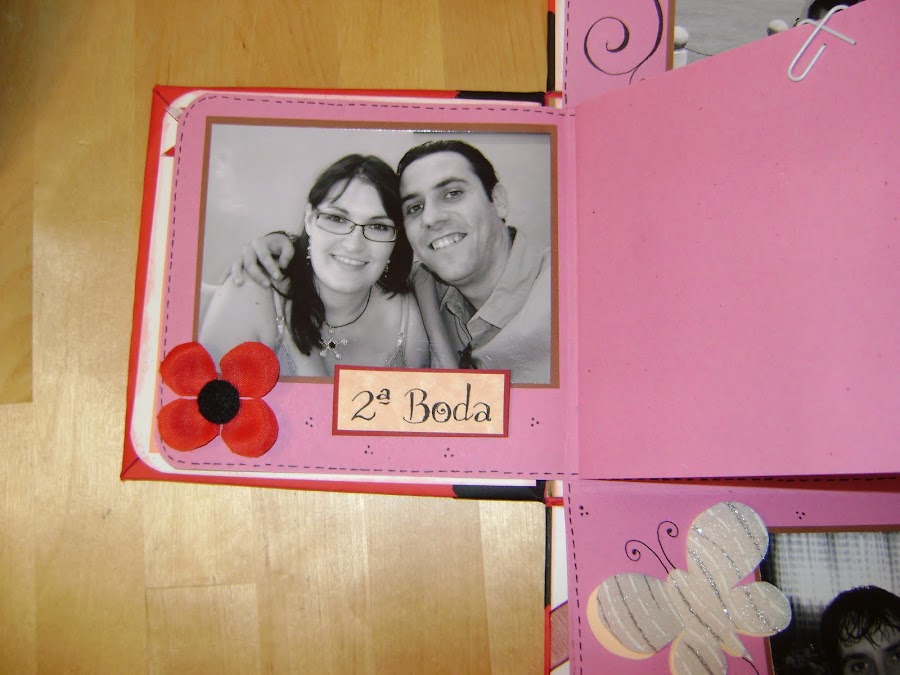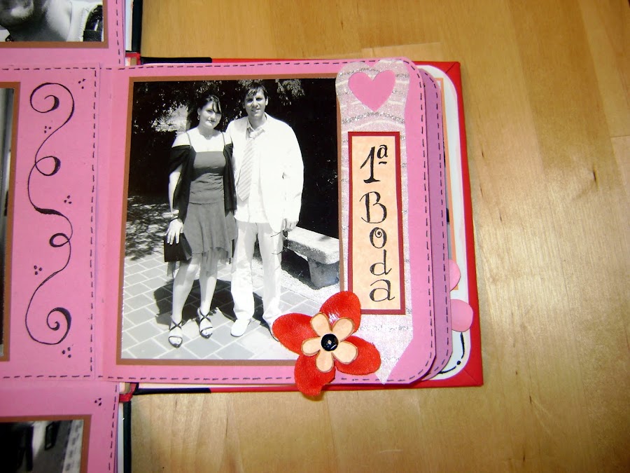 De todo el álbum hay algunas páginas que gustan mas que otras,en esta lámina hice un mecanismo que se llama fotos en cascada( waterfall, para las americanas) ...cuando estiras, las fotos van saliendo ...