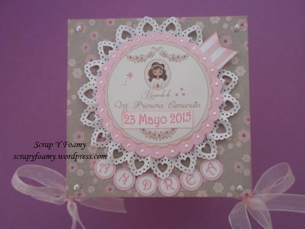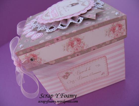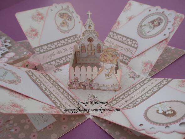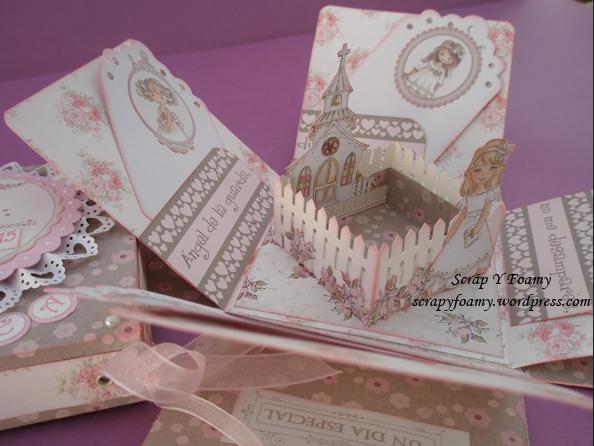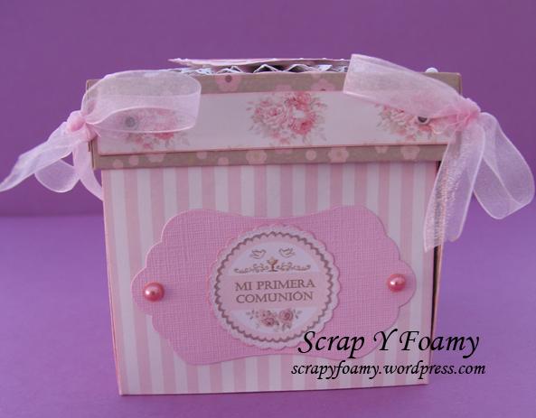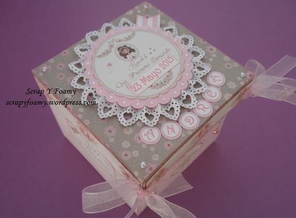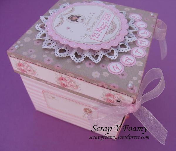 Una Caja explosiva para comunión. Tan dulce como todos sus trabajos. Algunos los puedes ver en este enlace y el resto en su blog.