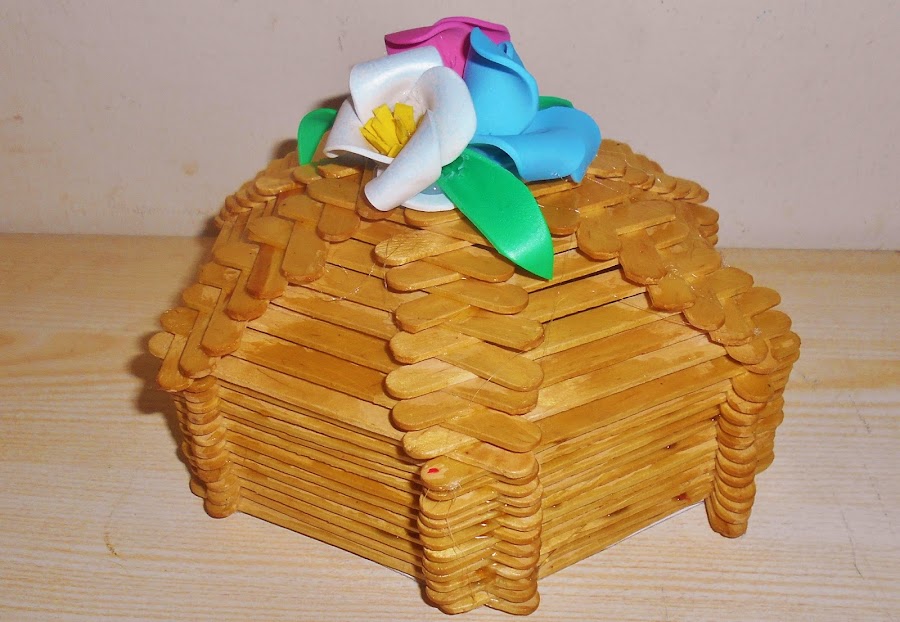 Hoy aprovecharemos los palitos de helado para realizar una caja decorativa que puedes utilizar como alajero, guarda todo, o lo que se te ocurra. Me trae muy buenos recuerdos porque hice una parecida para el día de la madre cuando tenía 8 años, así que no creo que a nadie le presente dificultades.