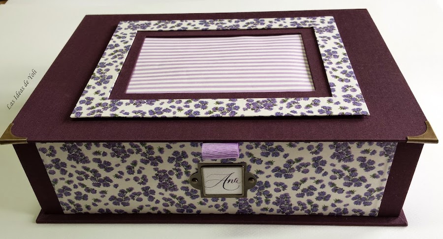 En la tapa doble marco para fotografía y su nombre en caligrafía.