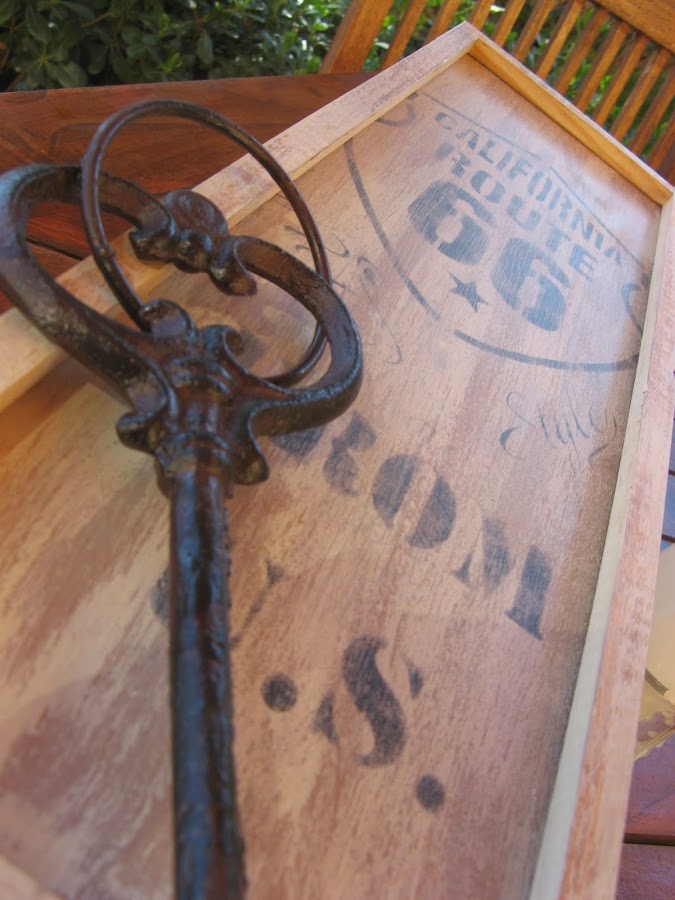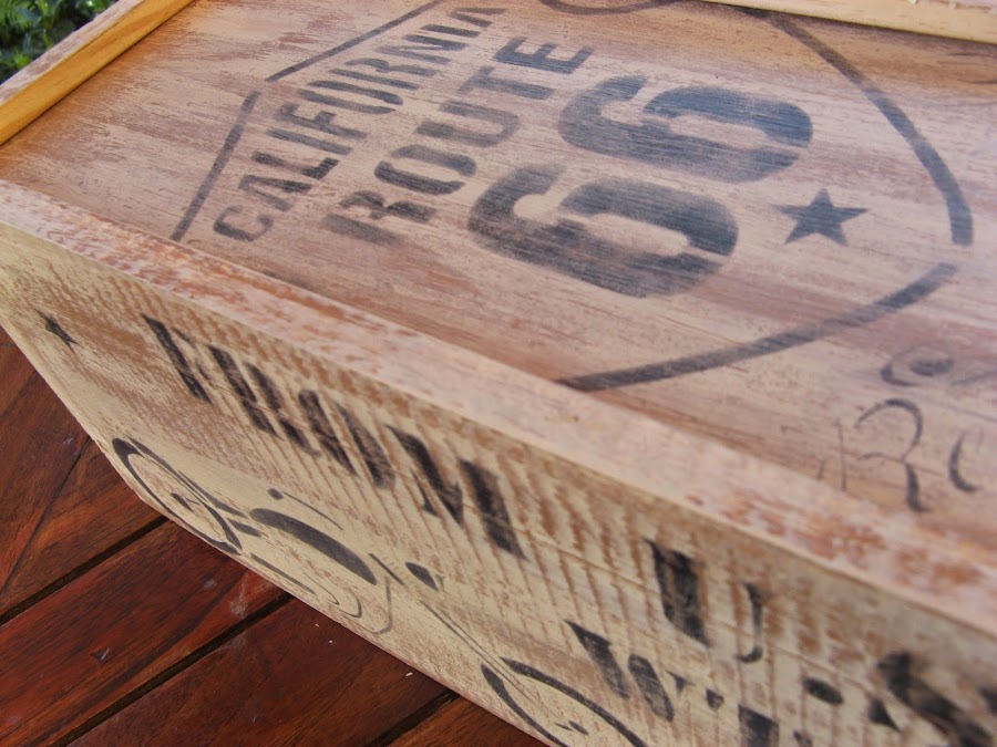 Por último, después de los estarcidos 2 manos de barniz acrilico satinado que deja apenas un brillito muy sutil...