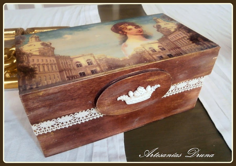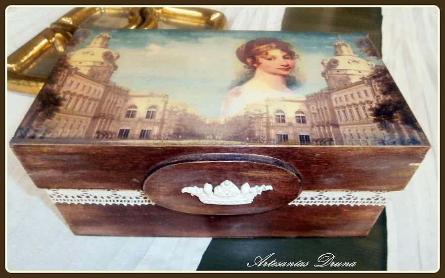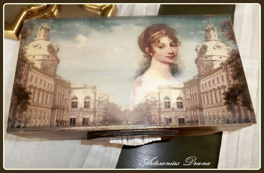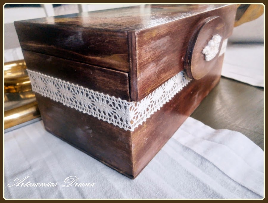 Esta cajita de madera me la consiguió mi querida Mar, y se fue para mi querida Mamen. Está realizada con acrílicas, entelada con doble faz y stencil.También va decorada con tela de arpillería barnizad ...