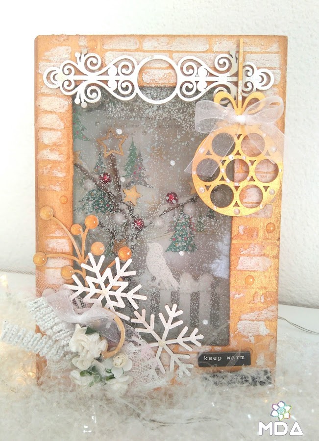 In addition to the wooden box I hve used: chalk paint white, gold acrylic, decorated paper and chipboads from Kora Projects (Christmas balls set Snowflakes