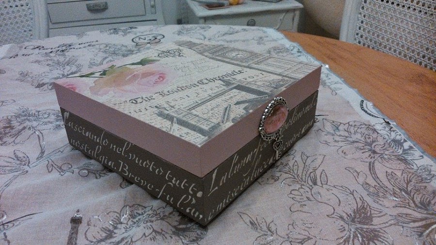 Caja recién sacada del horno... Servilleta, chalk paint de doble a de scrap en Pamplona, stencil de giffting y todostencil y estuco... El cierre lo he cambiado para poner un camafeo hecho con la misma servilleta al que he colgado un charm con forma de llave... El resultado... Juzgarlo vosotros... A mi me encanta...