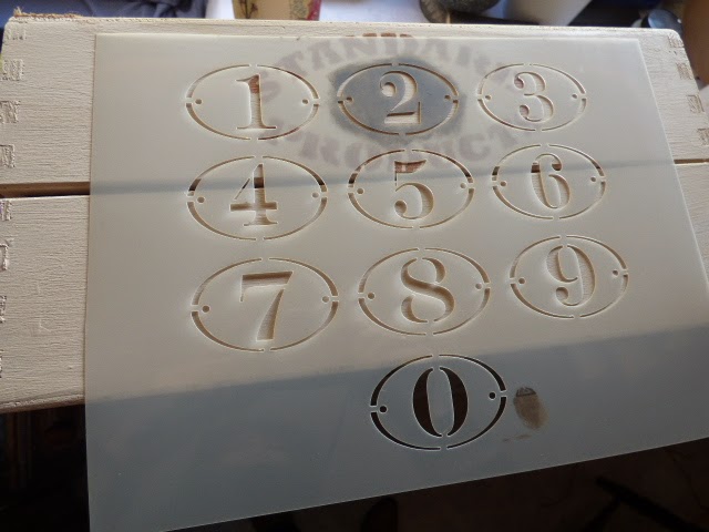 Con esta plantilla de 4 copetes y la de los óvalos con números he puesto detalles en la tira de arpillera de la tapa y por los laterales