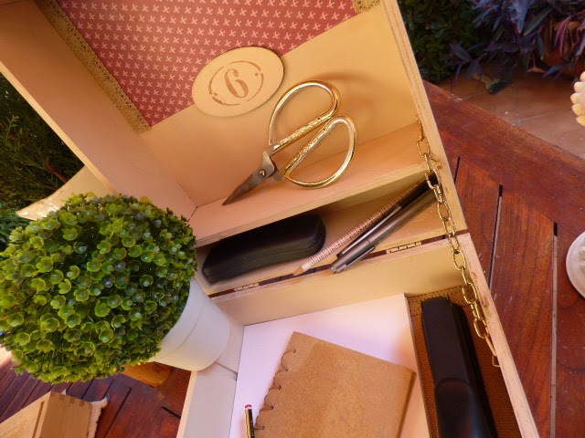 Yo creo que esta caja estaba defectuosa....si os fijais, ese departamento que lleva en la tapa, tendría que haber estado en la parte inferior de la caja. No podía darle la vuelta al ir a decorarla, porque el cierre sólo está correctamente puesto en esta posición de la caja ¿lo veis en la foto anterior??