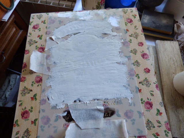 Para ello fijo la plantilla y extiendo pasta de relieve...una fina capa