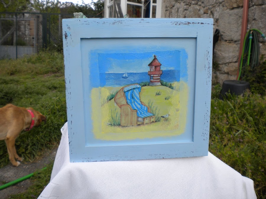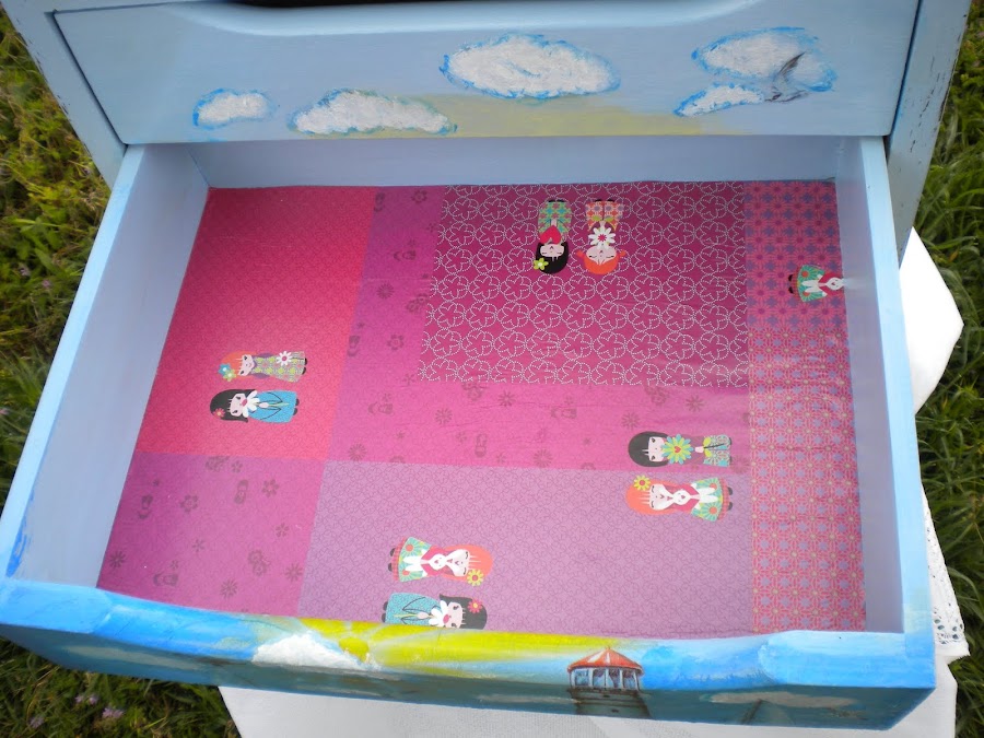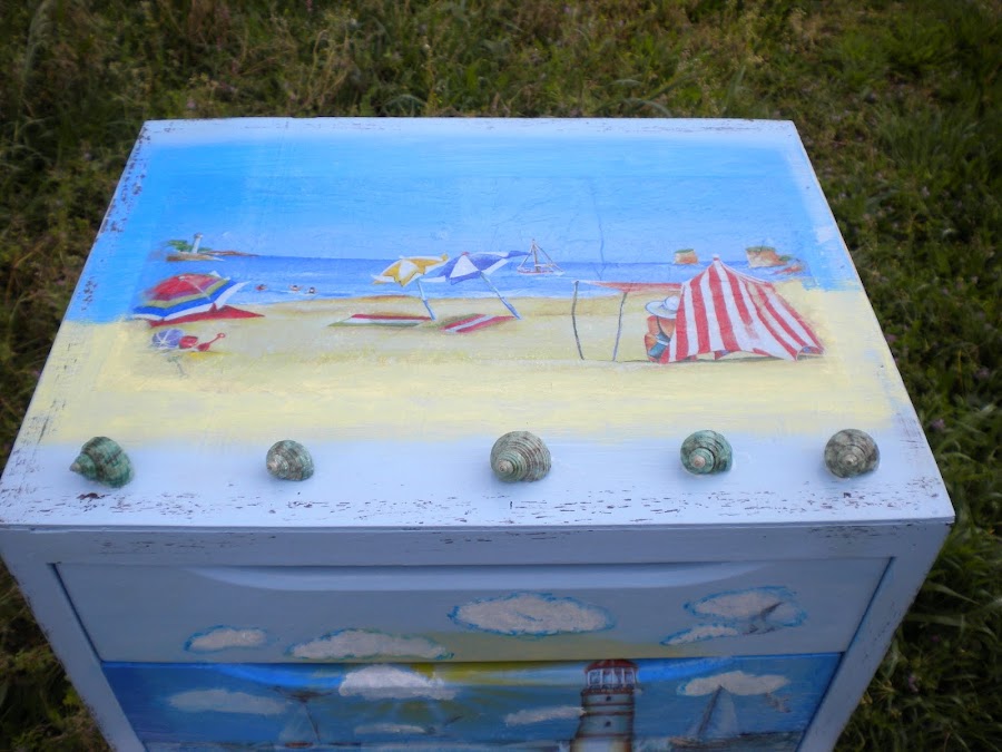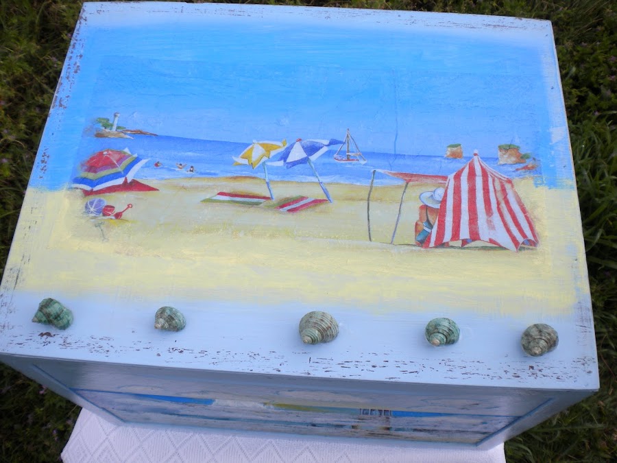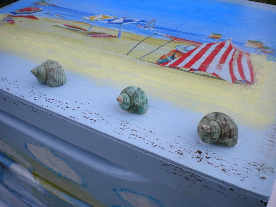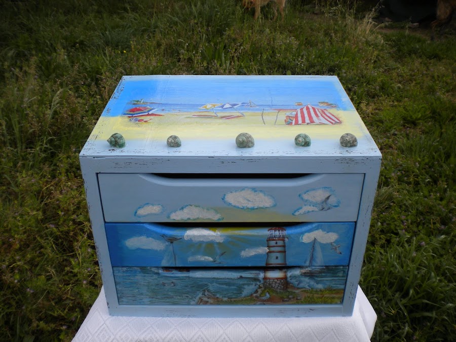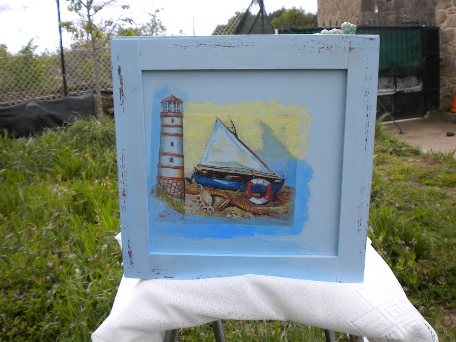 Mi sobrina hace tiempo que tenía ganas de una caja con motivos marineros porque ya había visto otras del mismo estilo que había hecho anteriormente, así que su madre me encargó que le hiciera una en secreto para regalarsela. Secreto que nos ayudó a guardar su hijo y nieto, respectivamente.