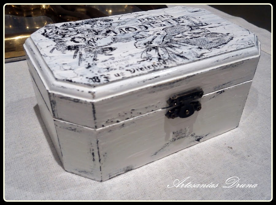 Esta cajita de madera me la consiguió mi querida Mar, y se fue para mi querida Mamen. Está realizada con acrílicas, entelada con doble faz y stencil.También va decorada con tela de arpillería barnizad ...