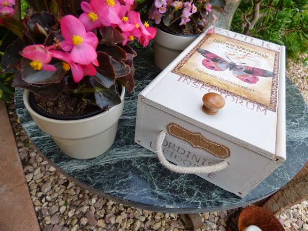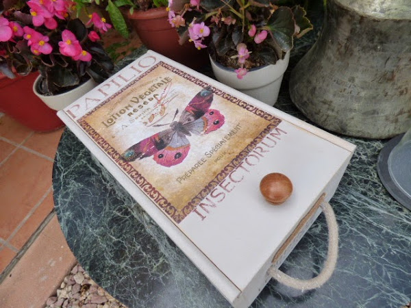 Así que os enseño esta cajita....de las de vino de 2 botellas. Esta me la encontré hace unas semanas en plena calle, ahí bien colocadita al lado del contenedor, como si el que la dejó allí pensara que eso no se podía tirar a la basura.....