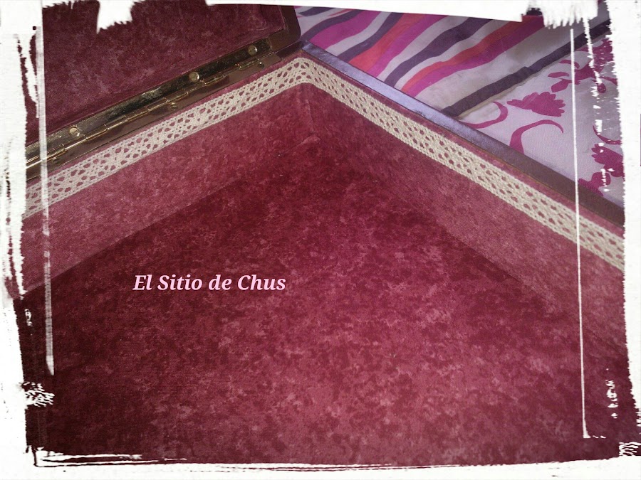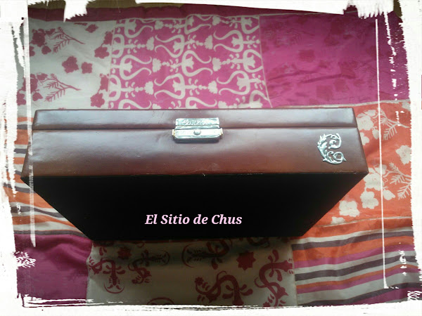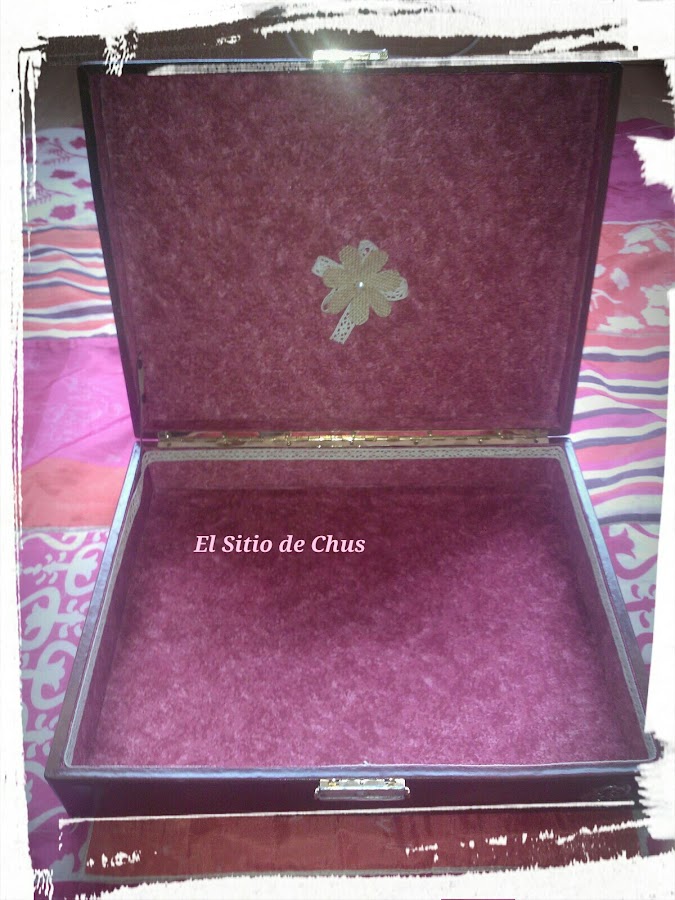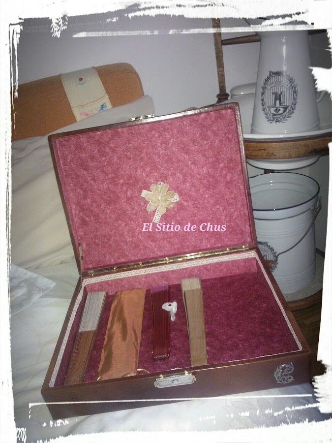 En cuanto la vi tuve claro qué quería hacer con ella, una caja de abanicos para mi amiga Carmen que los colecciona, y también sabía con qué decorarla, con estaño. Mi padre me la dejó diáfana por dentro y mi compi Susana, que es una restauradora de primera, me la forró por dentro, del resto me encargué yo, jajajajaja.
