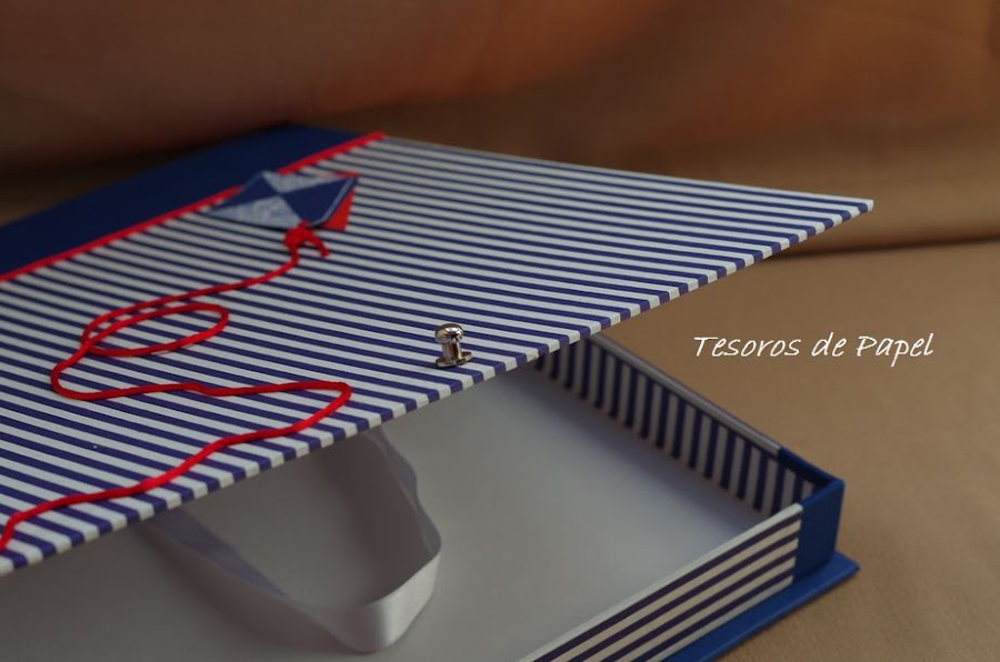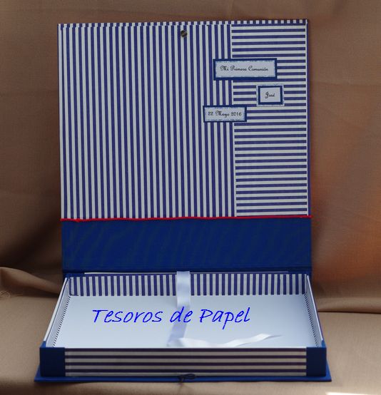 Así que, con un aire menos clásico, un poco informal, y sin querer ser demasiado infantil... Os presentamos esta caja para guardar un album de 1ª Comunión. Esta vez el nombre en el interior.