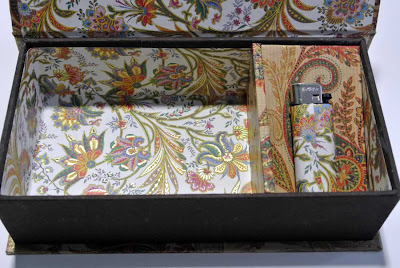 Una caja para la mesa del salón donde guardar los cigarrillos sueltos y un mechero. No os he puesto ningún cigarrillo porque al ser ex-fumadora y con ganas de fumar siempre, no tengo en casa ningún cigarrillo para evitar tentaciones.