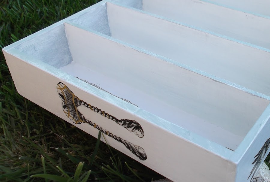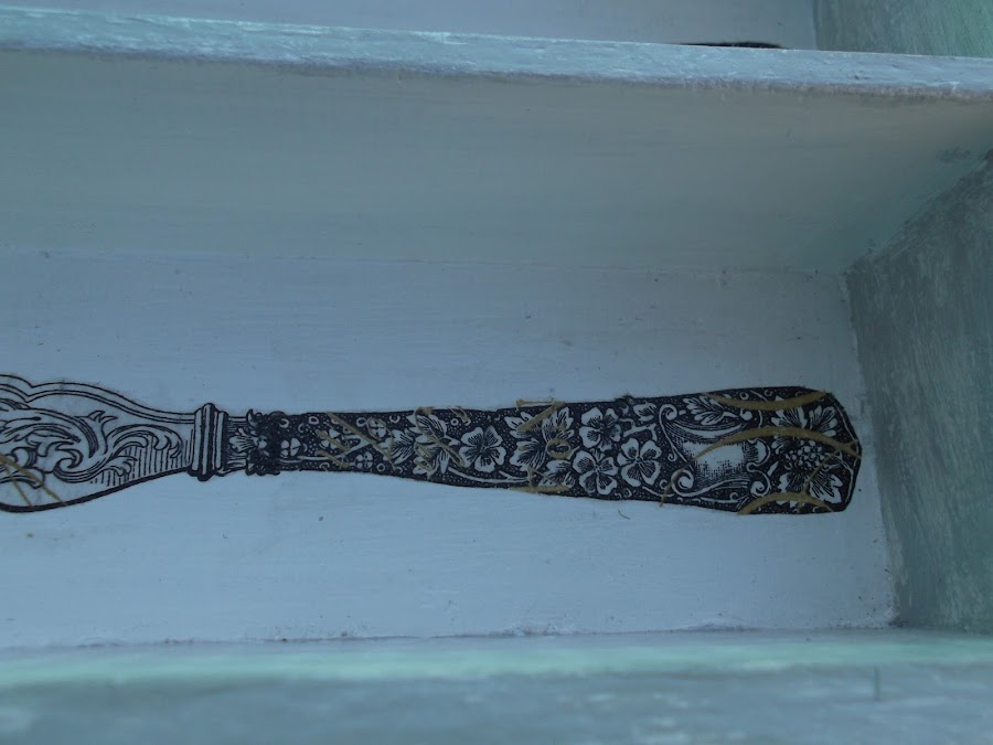 Los bordes y los laterales interiores los pinté de gris para luego lijar y que saliese un poco el tono blanco del fondo.