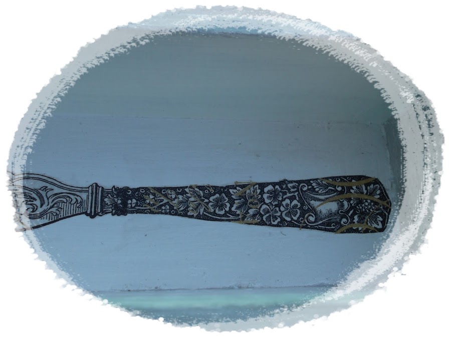 Así que lo que hice, fue poner primero la parte de arriba y luego con cuidado pegarle los mangos, para formar el cubierto entero. Eso lo hice con todos, menos con las cucharillas pequeñas, que esas si estaba el dibujo entero.