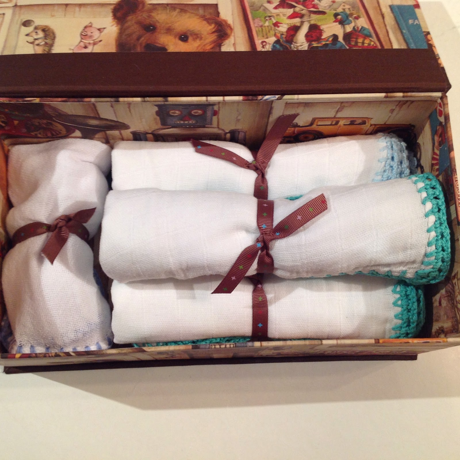 Bueno pues mientras llega y no llega Papá Noel, que al paso que llevo lo que van a venir son los Reyes Magos, vamos a colgar la caja regalo de bebé hecha con cartón coarrugado y detalles en fieltro. En este caso sólo se ven el babero y el body de bebé que lleva la caja pero se puede añadir el nombre del bebé o cualquier otro complemento.