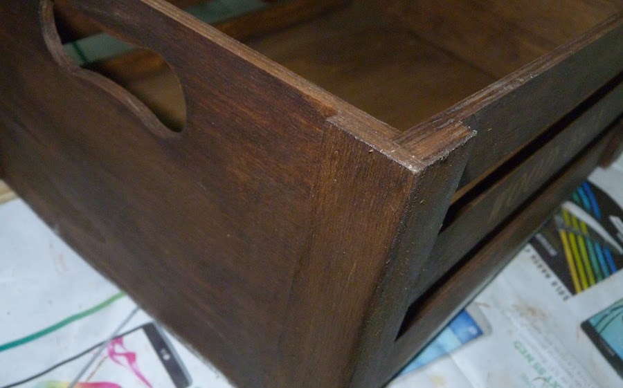 Quería una base más oscura, así que antes de pintarla, la teñí con nogalina y la barnicé con barniz mate incoloro, para evitar que el tinte manchara después la pintura.