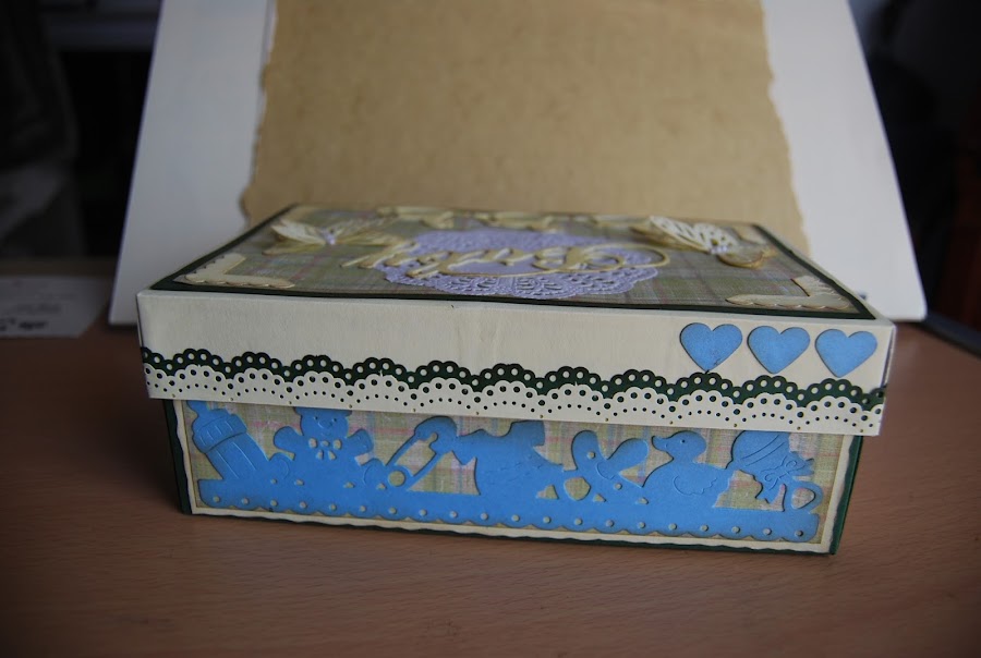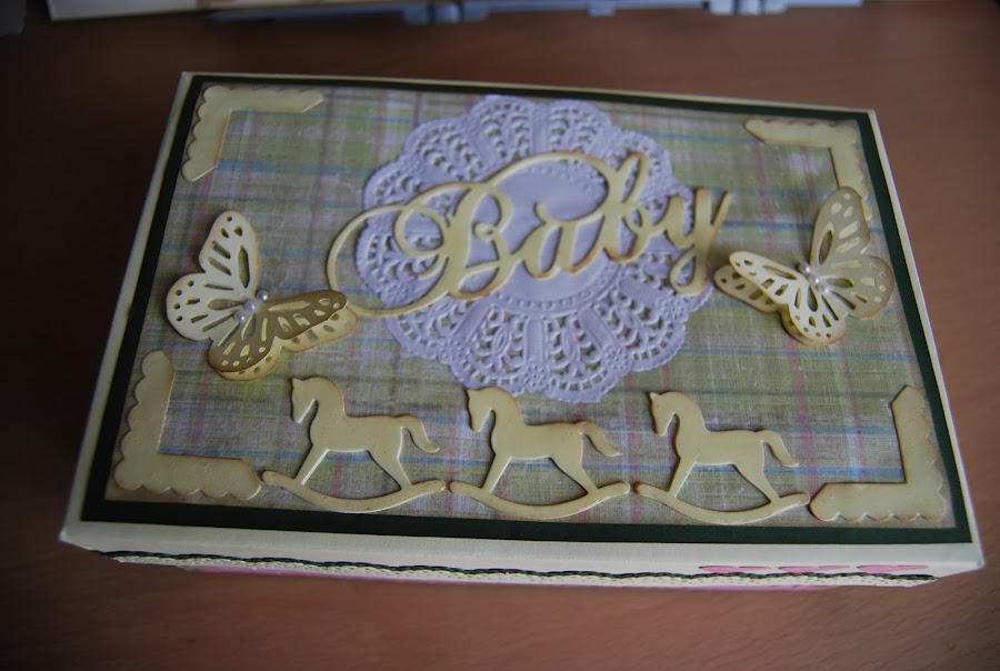 Como aún no se sabe si será niño o niña por un lado es rosa y por otro celeste y el color predominante es verde y crema...
