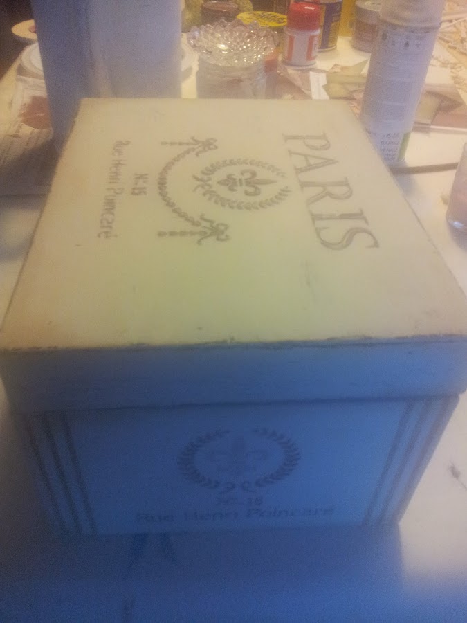 Y ya véis que aún sigo dándole a los pinceles y a las plantillas, en ésta caja que tiene un tamaño considerable he estrenado las nuevas plantillas que le compré a Lucía mezclándolas con un decoupàge de hortensias de papel de arroz y también he usado la vela, resumiendo, un poco de todo y el resultado ha sido el que podéis ver me gusta probar cosas que son nuevas para mí aunque el resultado no sea ...