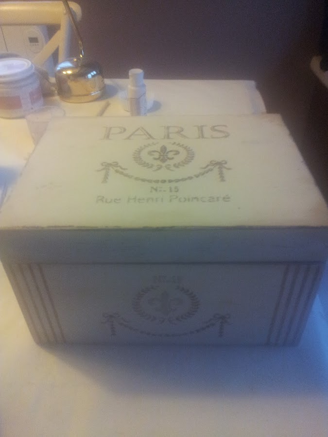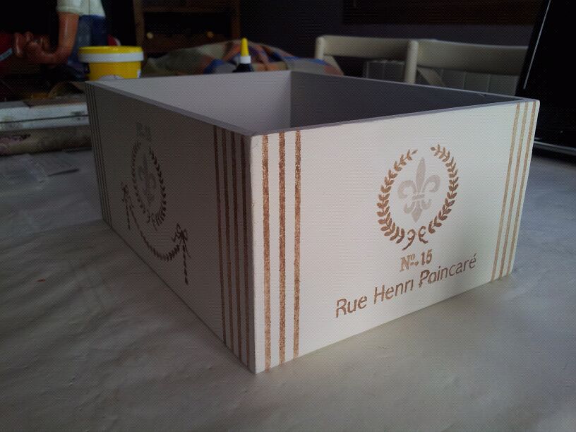Os muestro una caja de cartón duro de una famosa marca de colonia que he transformado con pinturas, stencil en relieve y decoupage. La caja es grande y lo primero que hice fue pintarla en color blanco roto. Pinte de ese color la parte de la tapa y como en el centro de dicha tapa estaban grabadas las letras de la marca de colonia lo que hice fue hacer un decoupage sobre un rectángulo de contrachap ...