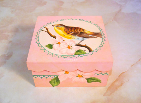 Como comente al principio explique el procedimiento para pintar en unos pocos pasos el ave y las flores, no tiene tanta complejidad y creo que cualquier persona que empieza o desee pintar con este proyecto puede muy bien encaminarse.Una caja multi usos