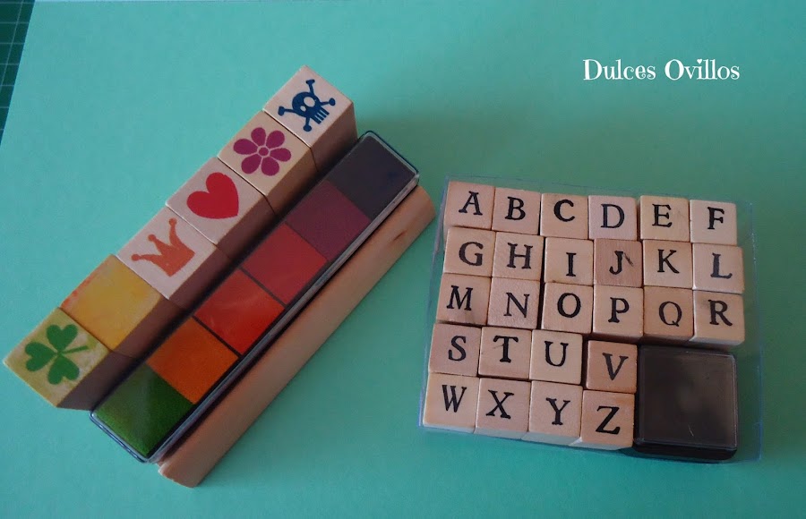 Ya puestos a aprovechar, cogí los sellos comprados en "Tiger", para estampar alguna cosita y que no quedara tan sosilla.