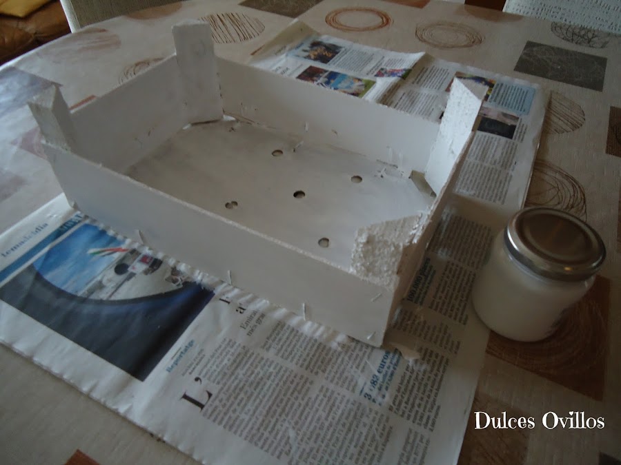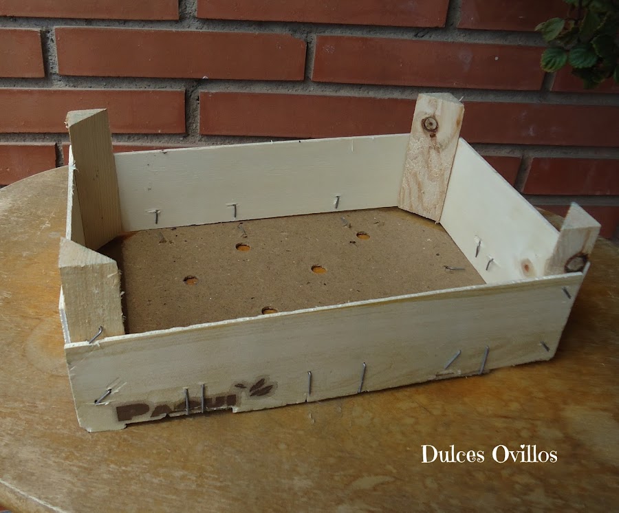 Como a mí me gusta así todo rústico estuve a punto de dejarla tal cual, pero venía con la marca de las hortalizas, así que al final opté por pintarla. Este Agosto tengo pensado pintar la mesa del balcón que, como ves, buena falta le hace. He comprado pintura Chalkpaint blanca y verde para hacer el famoso efecto vintage. No sé cómo quedará ya te la enseñaré. Me pierdo, volvamos a la caja. La mejor opción era pintar de blanco para que resaltaran los colores de las plantas.