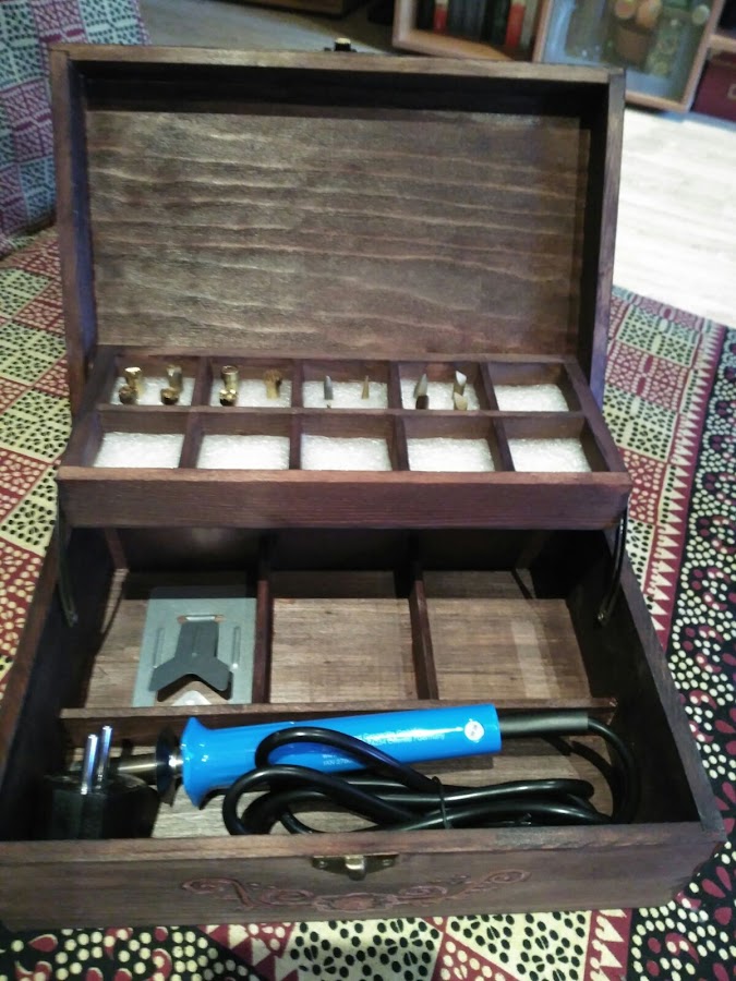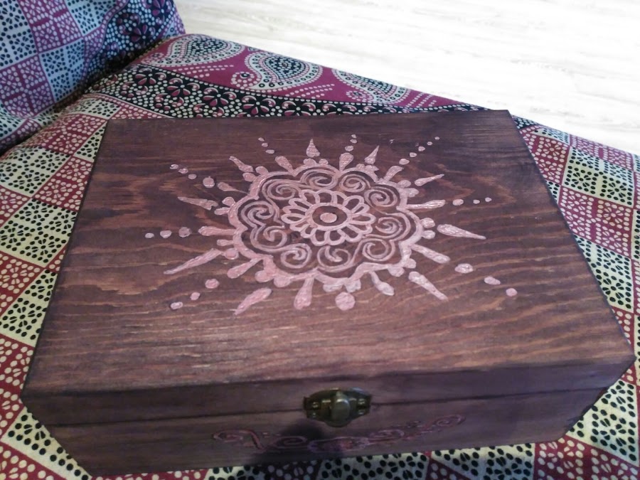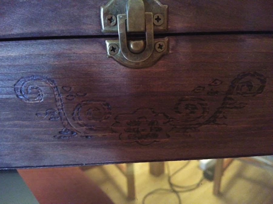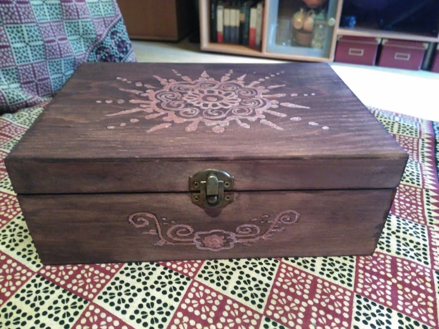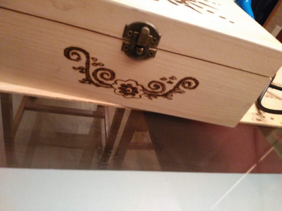 Aquí os enseño el resultado final de mi primera experiencia con pirógrafo. ¿Que os parece? ¿os gusta? Yo, si he de ser sincera, quedé encantada con el resultado. Me parece monísima mi cajita!!