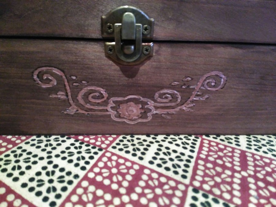 Bueno, así quedo mi caja cuando terminé de pirograbar... bonita, pero algo sosa... y además, no lograba eliminar del todo las marcas del papel de calco... (si lo hubiera sabido antes...)
