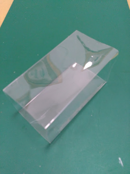 - Con cuidado, plegaremos para ir haciendo la forma. Primero, hacia un lado, presionando con un rodillo, por ejemplo, para que quede bien marcado, y no estropee el plástico, luego hacia el otro. Y así con las otras dos caras. Ya hemos conseguido la forma que buscábamos., un cuadrado casi perfecto :D