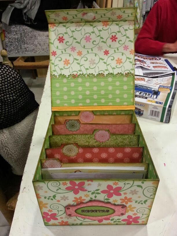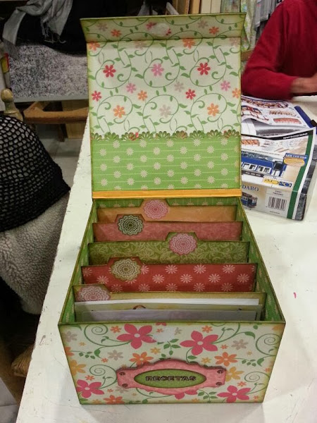 Esta caja le he hecho para guardar todas esas recetas que tengo de mi madre, mis cuñadas, mis hermanas y amigas.... para tenerlas organizadas y no perderlas. También se le puede dar cualquier otro uso