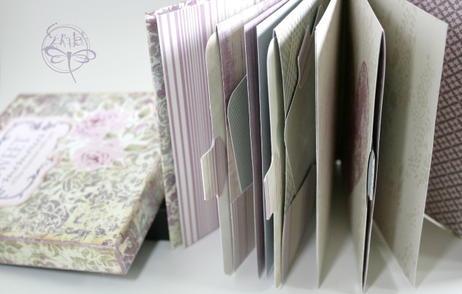 en un miniálbum como me gustan, llenito de etiquetas, bolsillos y sorpresas. Y si te estas preguntando por la marca del papel utilizado pues no recuerdo! sólo se que usé 3 diferentes paquetes, eso si, que concuerdan con los tonos.