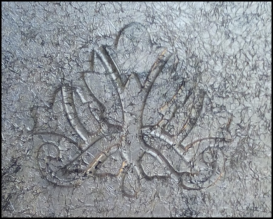 La tapa tenia un adorno incrustado, así que para disimularlo, hice un stencil en relieve.