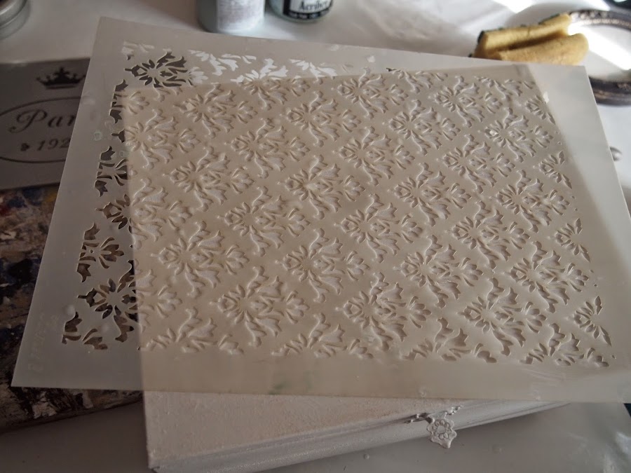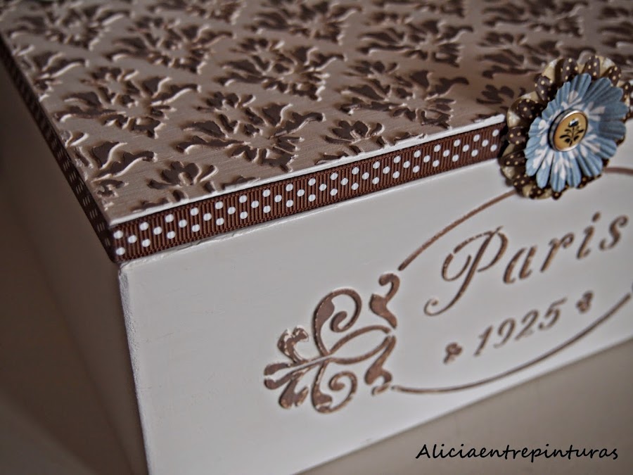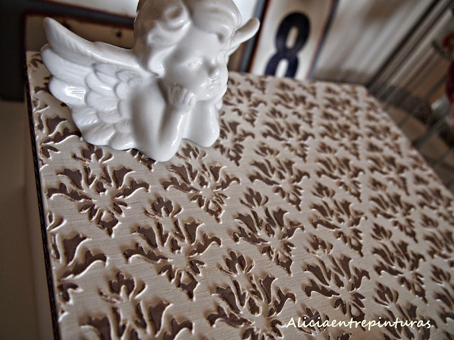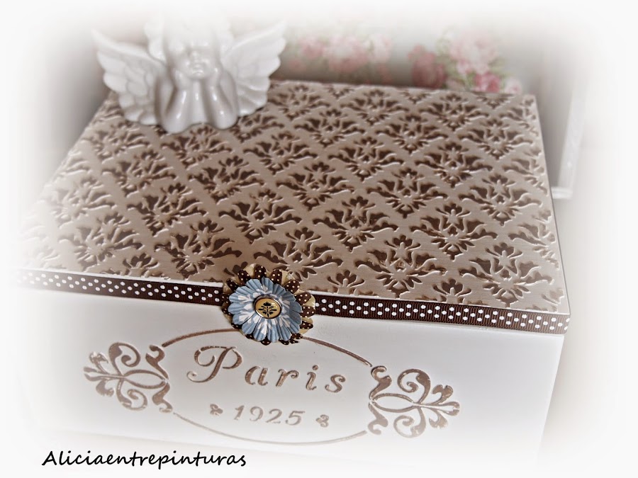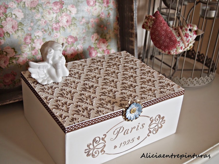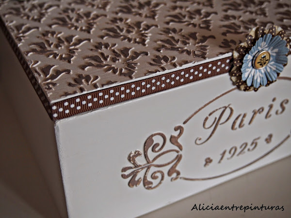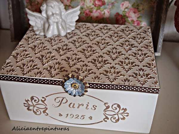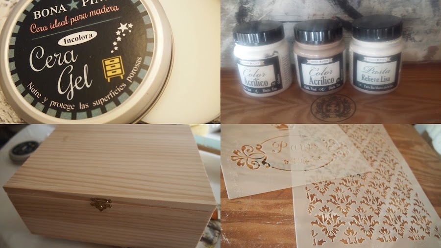 Pinturas chalk paint, pasta relieve, cera, caja y plantillas de
