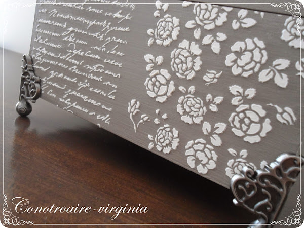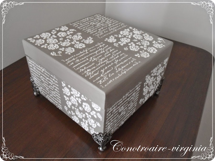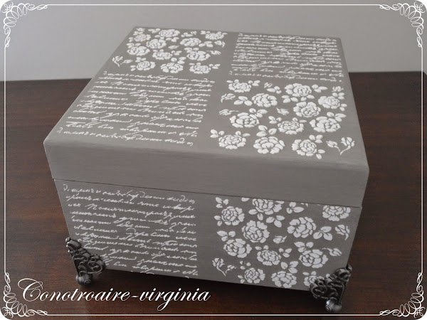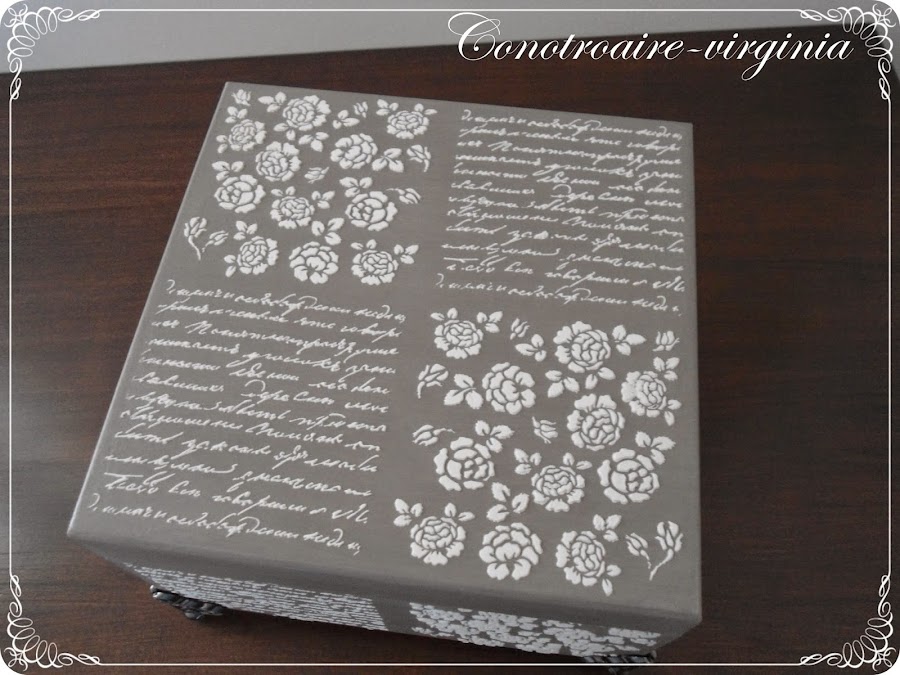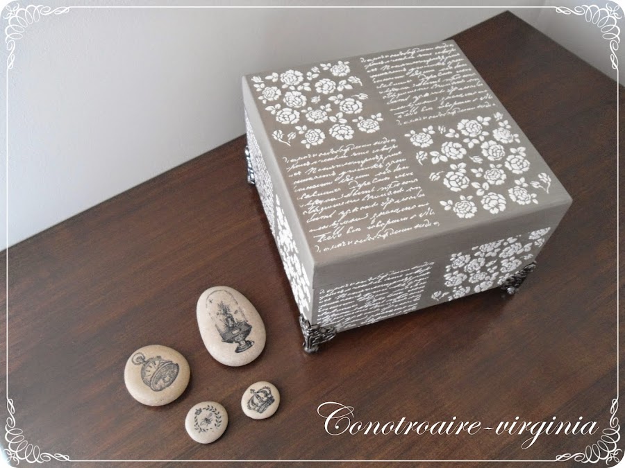 Para decorarla, he utilizado las plantillas "mini" de Lucia (Momentosvintage) con pasta relieve. Me encantan estas plantillas, al tener el motivo pequeño son perfectas para hacer fondos en cajas, marcos y trabajos pequeños.