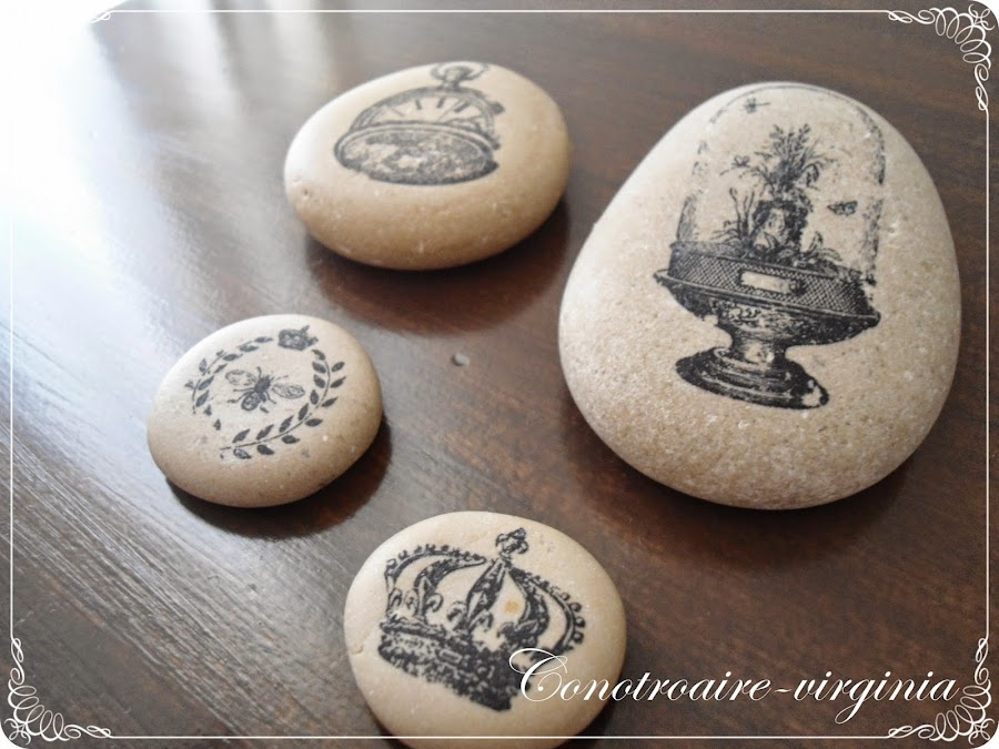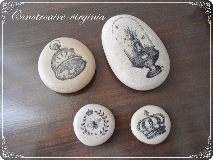 Y estas piedras las recogi en la playa, estas y muchas mas ¡me he traido una bolsa hasta arriba! ja,ja,ja.... las he decorado con transfer.