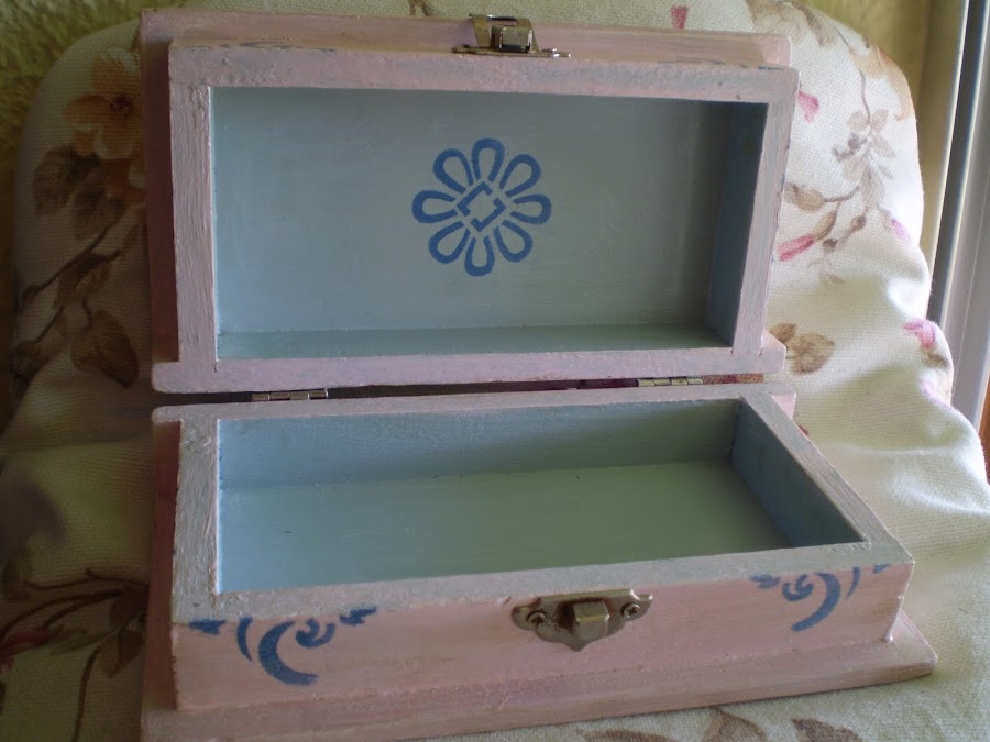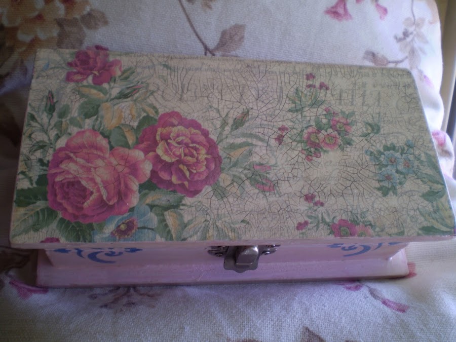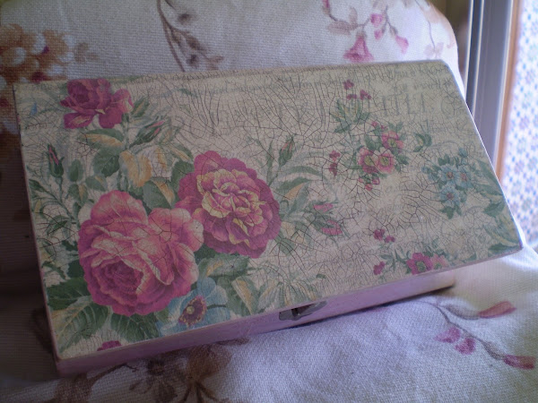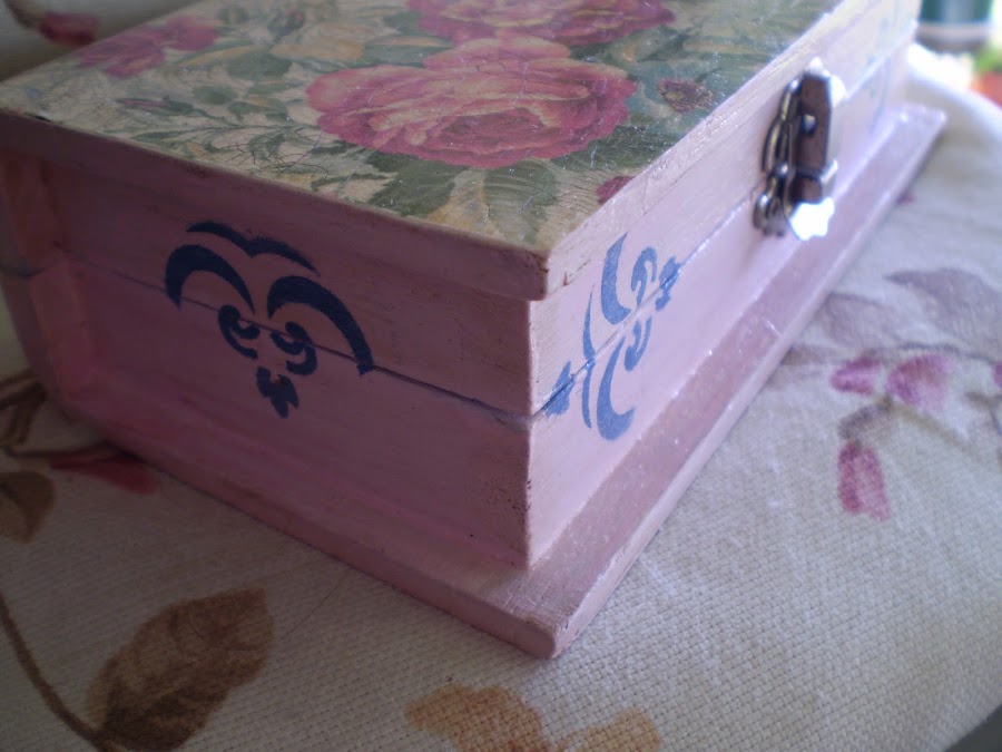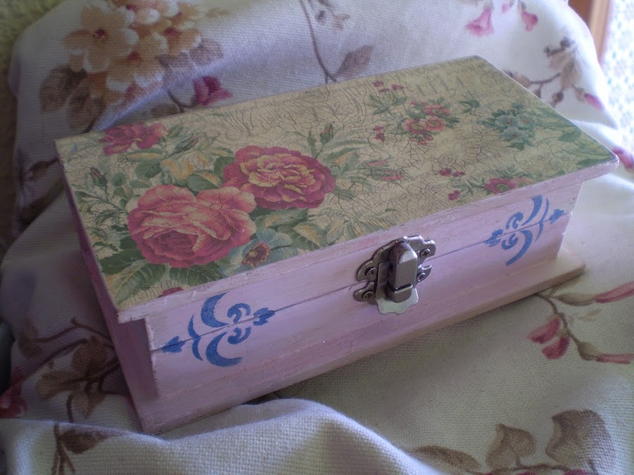 Os enseño una caja que he realizado con craquelado, pintada con pátina , decoupage y estencil.