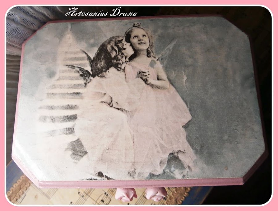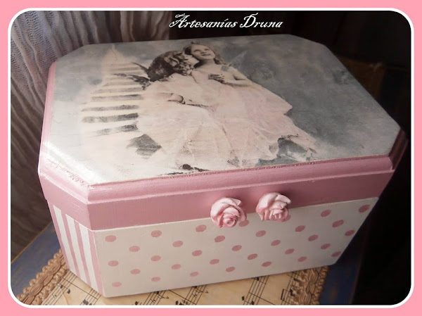 Esta cajita de madera me la consiguió mi querida Mar, y se fue para mi querida Mamen. Está realizada con acrílicas, entelada con doble faz y stencil.También va decorada con tela de arpillería barnizad ...