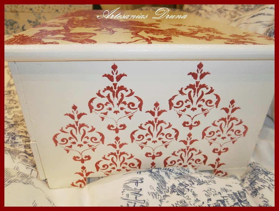 Esta cajita de madera me la consiguió mi querida Mar, y se fue para mi querida Mamen. Está realizada con acrílicas, entelada con doble faz y stencil.También va decorada con tela de arpillería barnizad ...