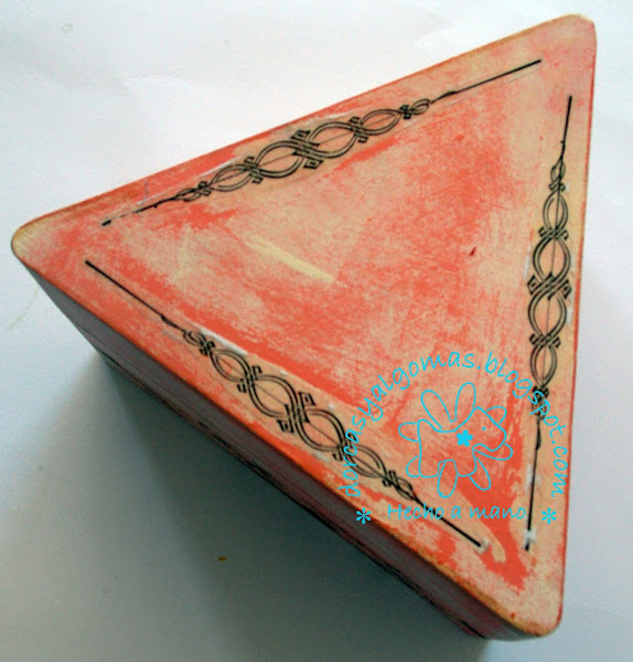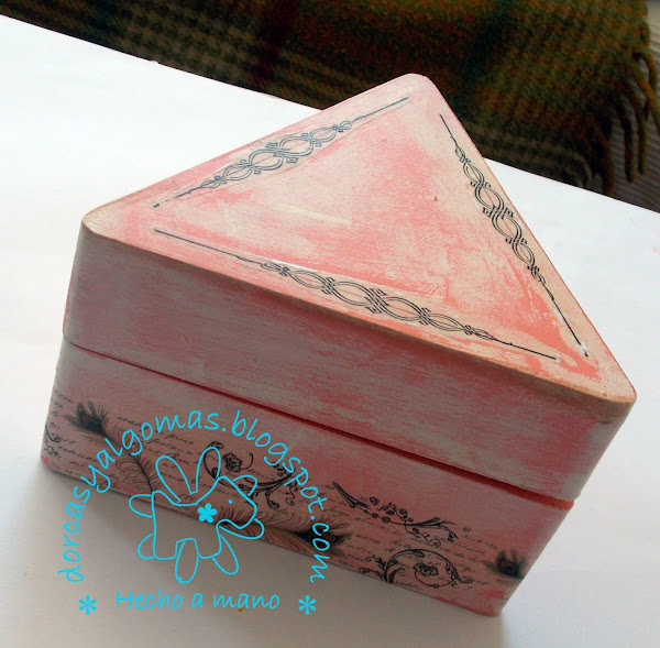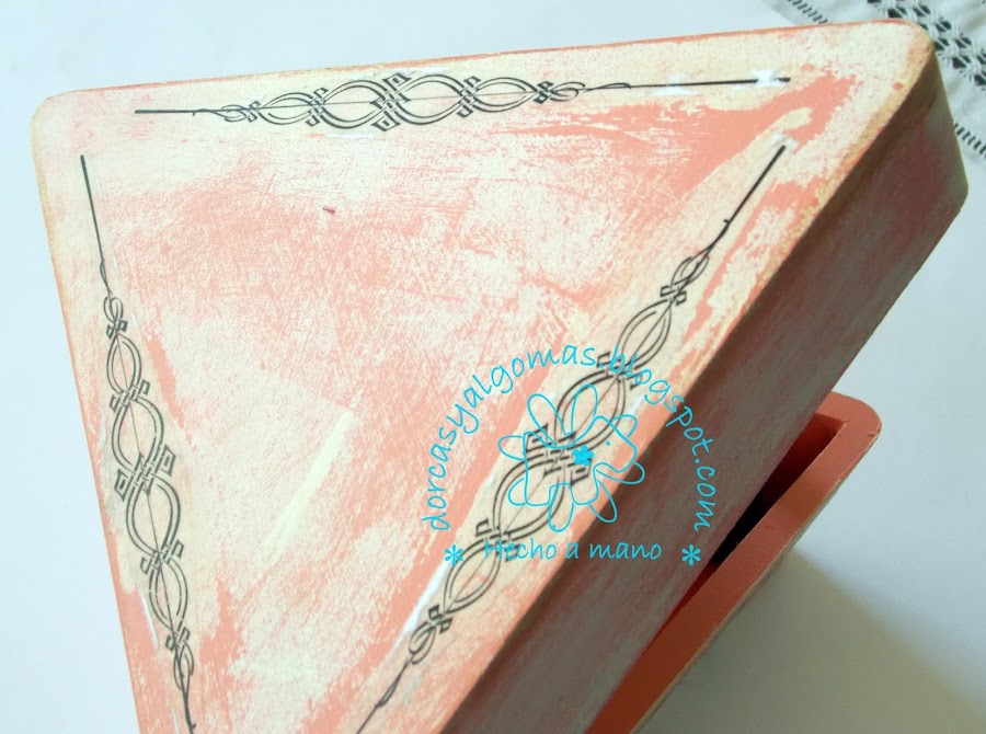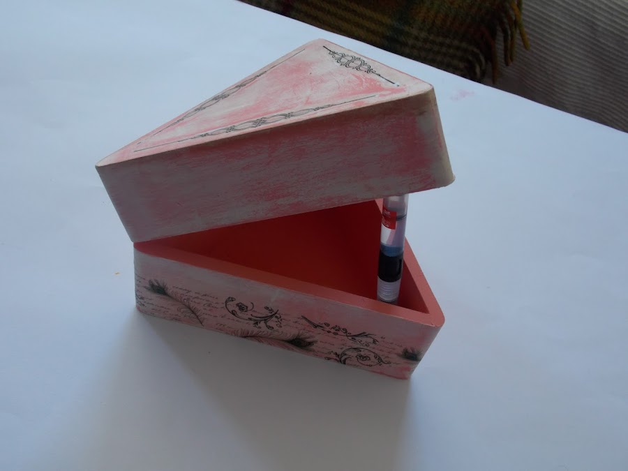 Hoy os traigo una caja triangular de madera decorada con las pinturas a la tiza y con la técnica del decoupage.