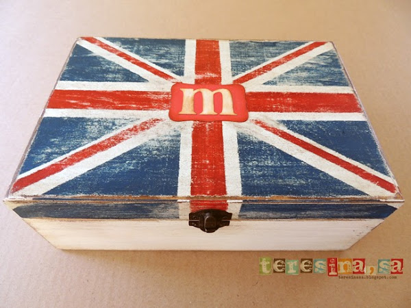 Feia molt de temps que tenia ganes de pintar una capsa amb la Union Jack, la bandera d"Anglaterra. Per Internet he vist mobles i altres coses pintades així i jo encara no n"havia fet res.
