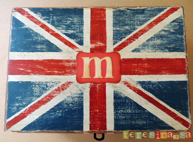 La oportunidad se me presentó cuando me encargaron hacer un joyero para Martha. La conozco y se que las cosas clásicas no le van, que le encanta el rojo y que vivió durante una temporada en Londres. Puse esta información en la coctelera y tachann! tuve claro que la Union Jack le gustaría.