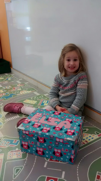 Aquí mi niña, en su clase, con su facilidad de palabra y ya gran vocabulario explicando a sus compañeros lo que traía en la caja. Disfrutó, fue un gran día.