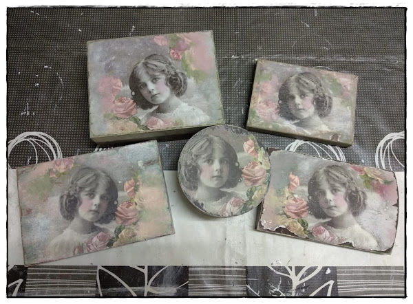 Aquí os muestro algunas de las de mis compañeras.donde podéis ver lo bien que les quedó la servilleta integrada, dado que esta no cubría toda la tapa de las cajas.