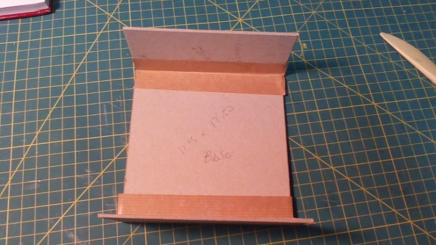 Corta tiras de papel kraft engomado. Comienza por pegar los lados de la medida igual que la base. Yo pego el papel con cola para reforzar su adherencia.
