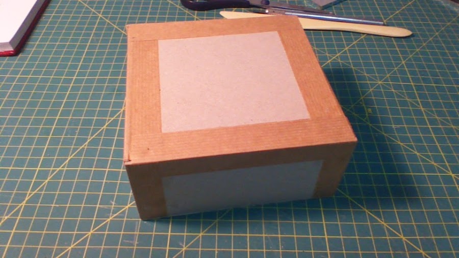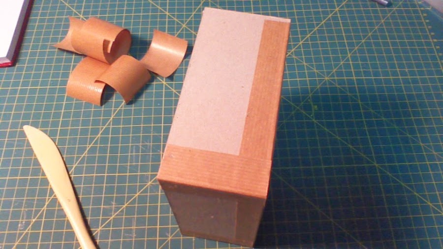 Pega papel kraft por dentro y fuera de la caja y en las esquinas.
