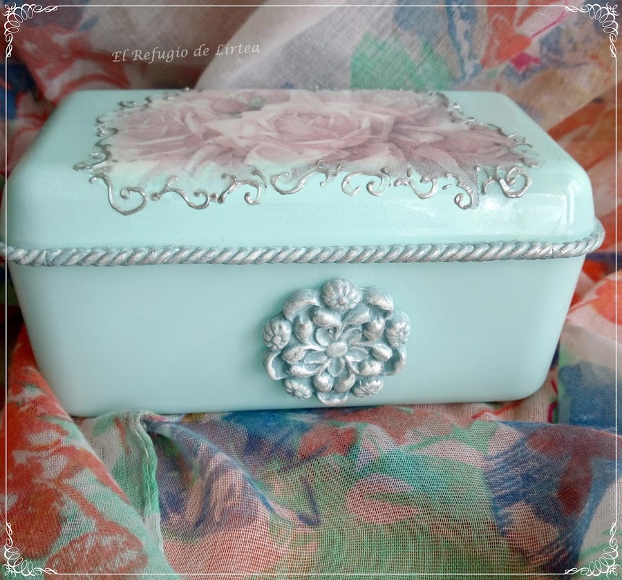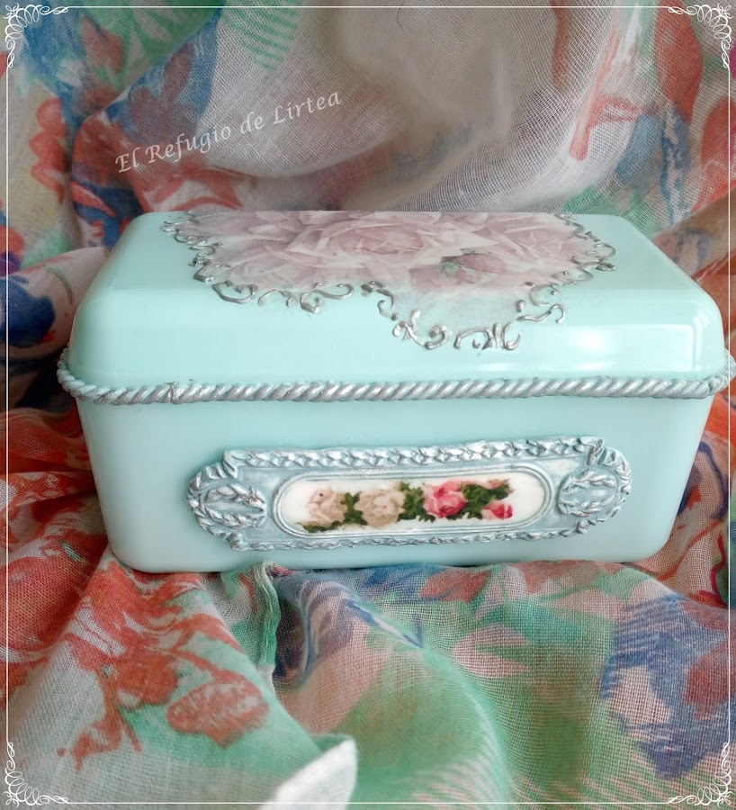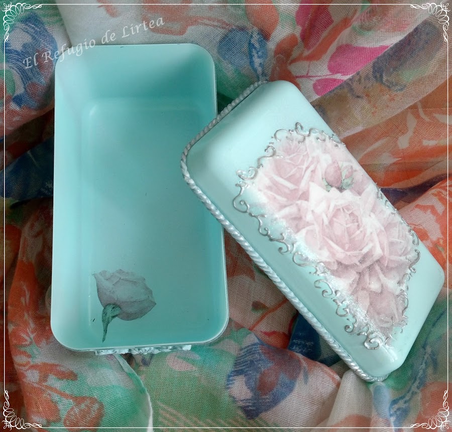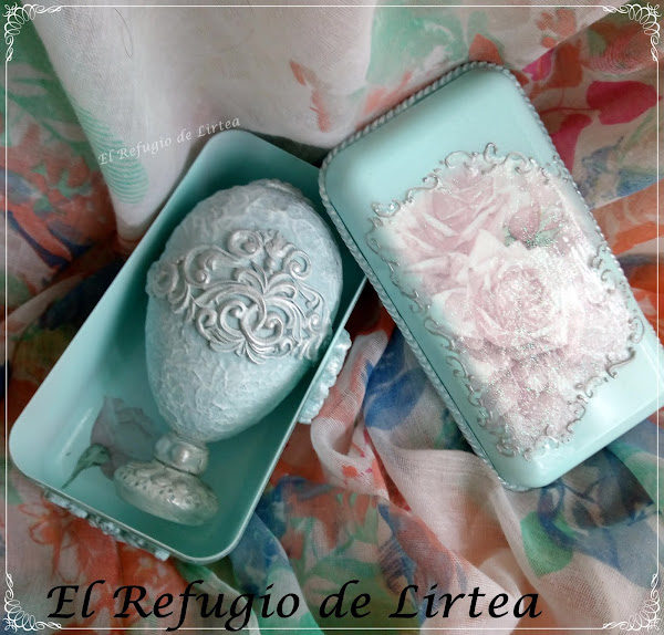 Nuestras amigas blogueras Mia y Ana nos invitan a participar en su 2º Reto Craflandia haciendo un trabajo en color rosa y/o azul,yo las acompaño con esta caja y este huevo de porexpan que hice para otra gran amiga como es Amparo Lacruz.