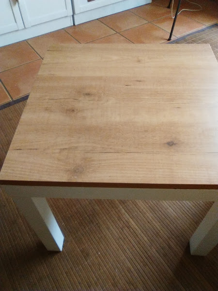 Un poco de lija,imprimación y pintura,varias capas finitas,un tablero nuevo y mesa lista